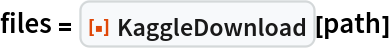 ResourceFunction["KaggleDownload"][id] downloads Kaggle datasets associated with id to a local cache directory. |