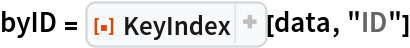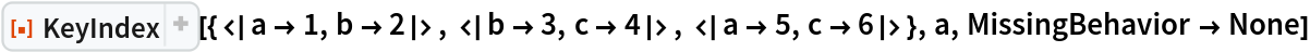 ResourceFunction["KeyIndex"][key] represents an operator form of ResourceFunction["KeyIndex"] that can be applied to an expression. |