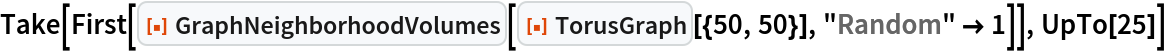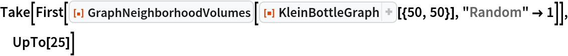 Compute the volumes of neighborhoods around a node in the Klein bottle graph: