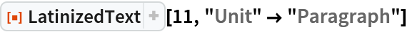 ResourceFunction["LatinizedText"][n] returns a Latin dummy text of length n units. |
