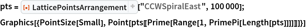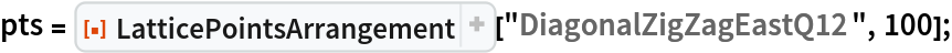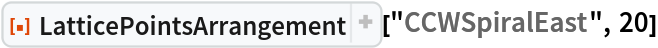 ResourceFunction["LatticePointsArrangement"][arrangement,n] generates the first n lattice points based on arrangement. | |