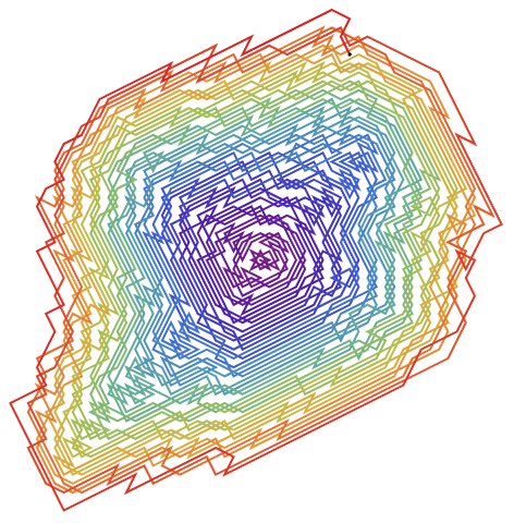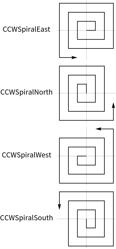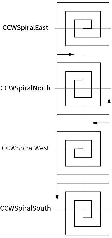 Create 20 points in a counter clock wise spiral starting in the eastern direction: