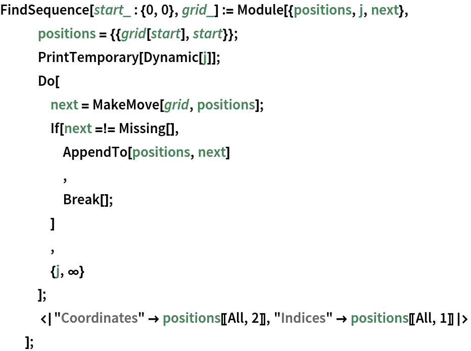 Recreate the OEIS A316667 sequence of a horse moving on a spirally numbered board and moving to the lowest available unvisited square at each step: