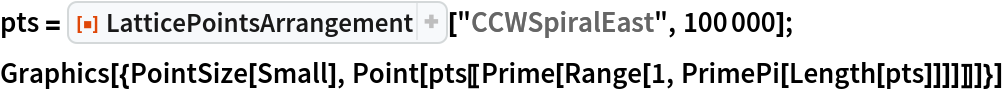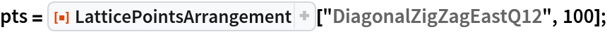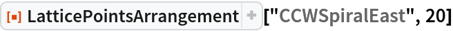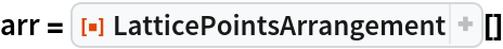 ResourceFunction["LatticePointsArrangement"][arrangement,n] generates the first n lattice points based on arrangement. | |