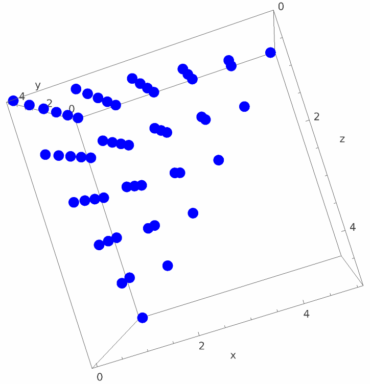 Visualize these lattice points. Here, we use FindInstance to obtain all the points:
