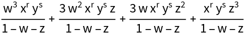 Compute the sum of xaybzc over non-negative integers satisfying x + y + z ⩽ 5: