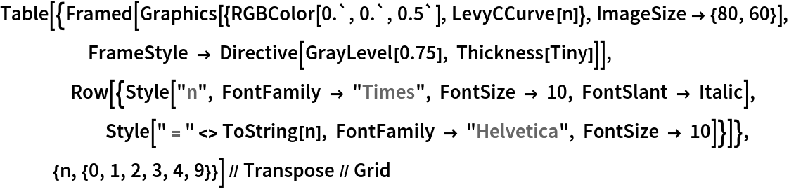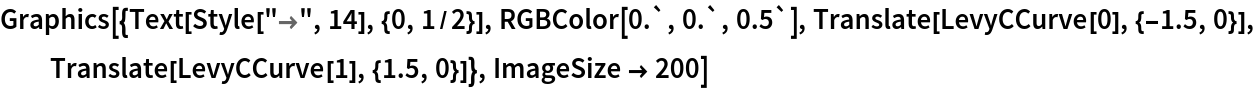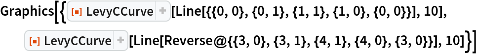 ResourceFunction["LevyCCurve"][{p1,p2},n] uses the line connecting the points p1 and p2 as the initial line. | |