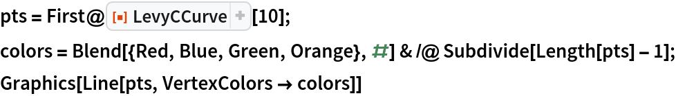 ResourceFunction["LevyCCurve"][{p1,p2,… ,pn},n] uses the lines joining the points pi. |