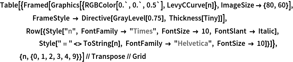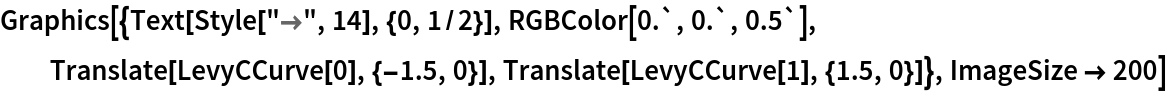 ResourceFunction["LevyCCurve"][{p1,p2},n] uses the line connecting the points p1 and p2 as the initial line. | |