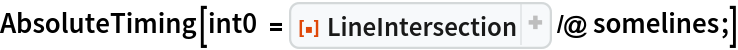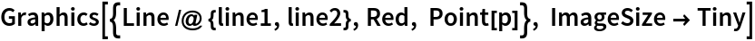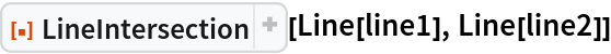 ResourceFunction["LineIntersection"][{a,b},{c,d}] returns the intersection of the infinite lines through points a to b and points c to d. | |