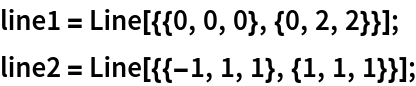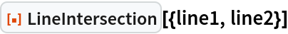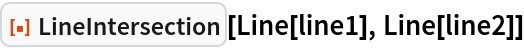 ResourceFunction["LineIntersection"][{a,b},{c,d}] returns the intersection of the infinite lines through points a to b and points c to d. | |