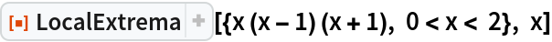 ResourceFunction["LocalExtrema"][expr,x] computes the local maxima and minima of expr with respect to x. | |