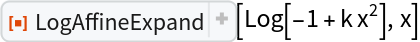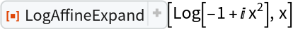 LogAffineExpand gives an expansion which is guaranteed to be correct for real x only. It may not be valid for complex x: