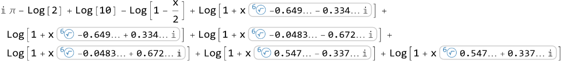 Builds a polynomial as ten times six factors. LogAffineExpand reduces its log to a constant plus one affine log per factor, inserting a piecewise 2πⅈ term for principal-branch correctness: