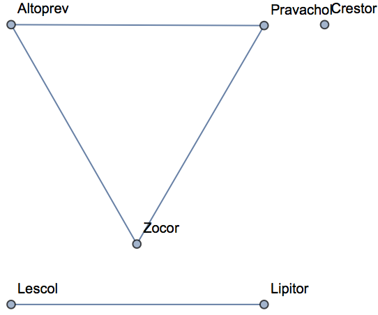 Compare the structural similarity of six common statin drugs using the JaccardDissimilarity of the MACCS keys (one minus this is equivalent to the Tanimoto similarity):