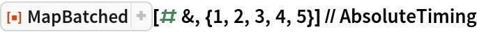 ResourceFunction["MapBatched"][f,expr,action] applies f to each element on the first level of expr,performing action every five elements. | |