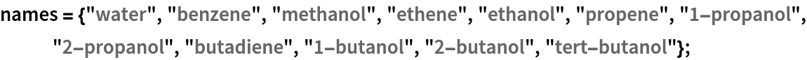 Define a list of chemicals: