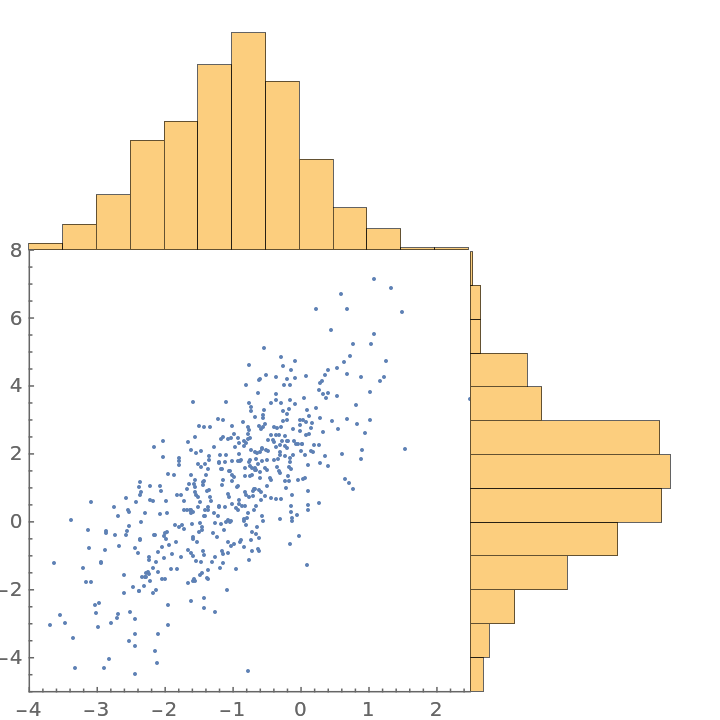 See the marginal distributions of 2D data together with the data: