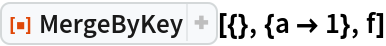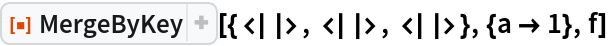 ResourceFunction["MergeByKey"][{key1 → f1, key2 → f2, …}] represents an operator form of ResourceFunction["MergeByKey"] that can be applied to an expression. | |