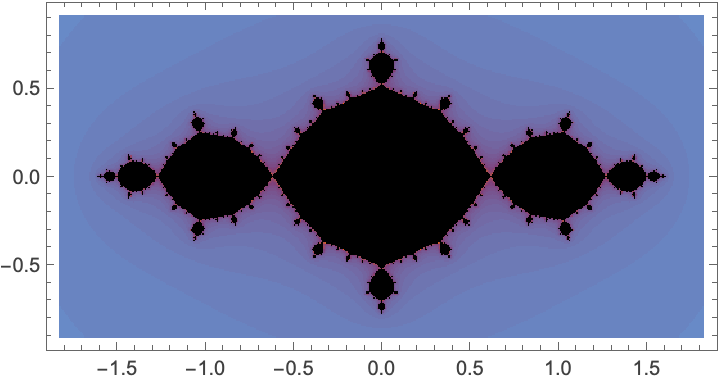 Increasing the values of the arguments leads to an outline of the Mandelbrot set: