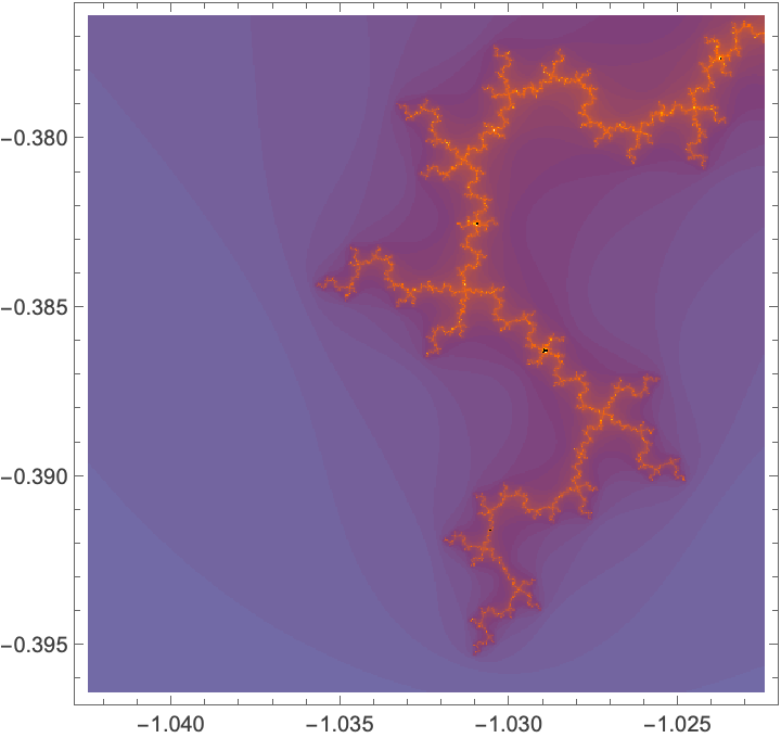 MandelbrotSetPlot[{z - 0.01 r, z + 0.01 r}]
