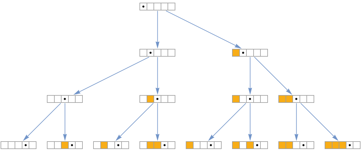 Create a multiway state graph of a "universal" non-deterministic generalized shift that computes all binary sequences of length 3: