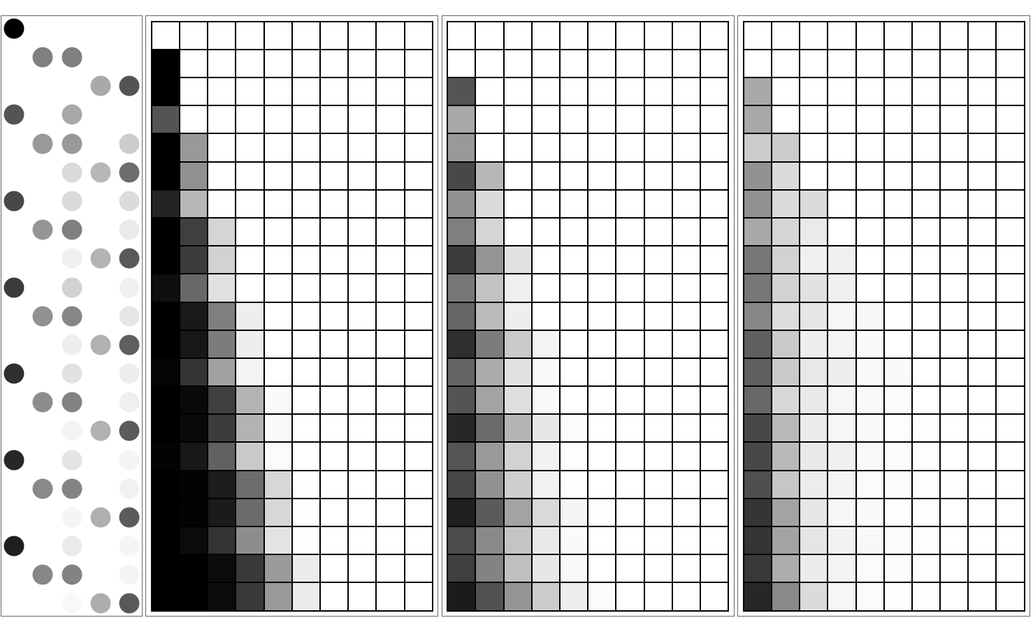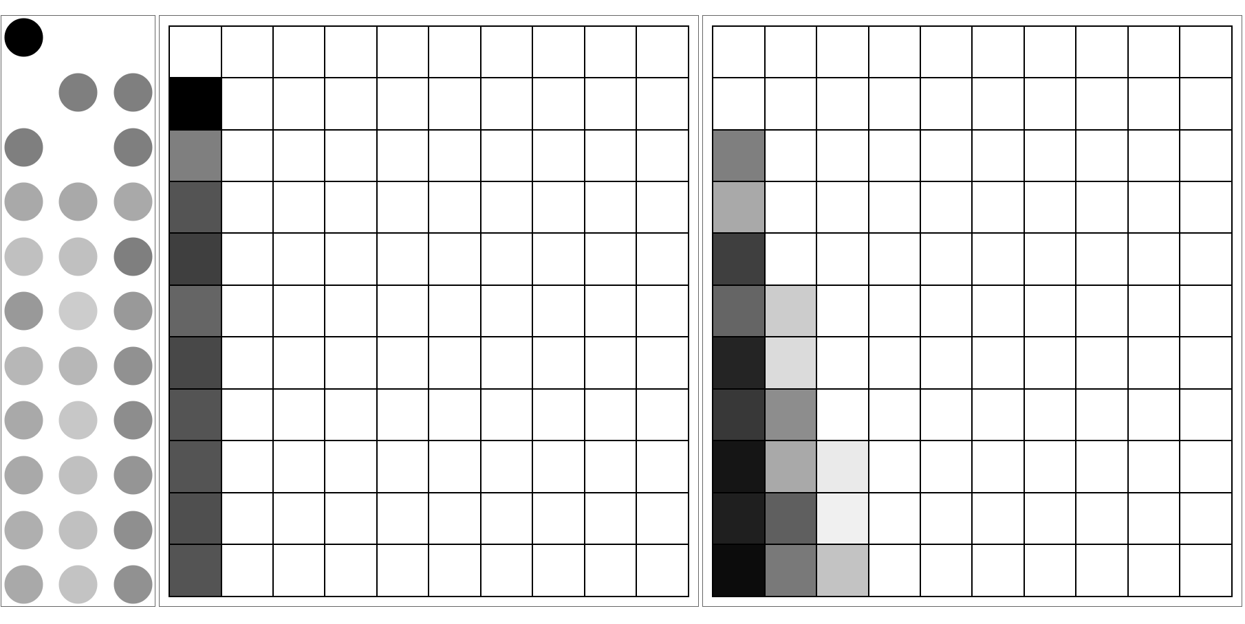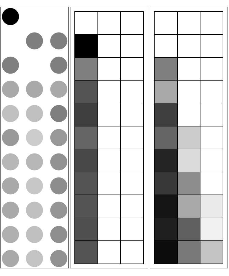 ResourceFunction["MultiwayRegisterMachine"]["ProbabilityPlot",prog,depth,init,maxTokens] outputs multiple tables. Each row of the first table has boxes that represent the instructions of the machine. The opacity of the circle in each box indicates the probability that the machine is currently on that instruction at the given depth. Each of the rest of the tables represents a register, where the opacity of each box in row i and column j represents the probability that the register has a value of at least j at depth i. These probabilities are determined by considering all possible states that the register machine could have reached at every depth.