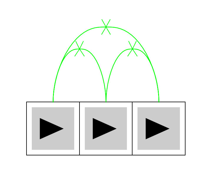 ResourceFunction["MultiwayRegisterMachine"]["CirclePlot",prog,nreg] generates a visualization of a series of instructions arranged in a circle, where instructions are represented as above, which forms a multiway register machine.