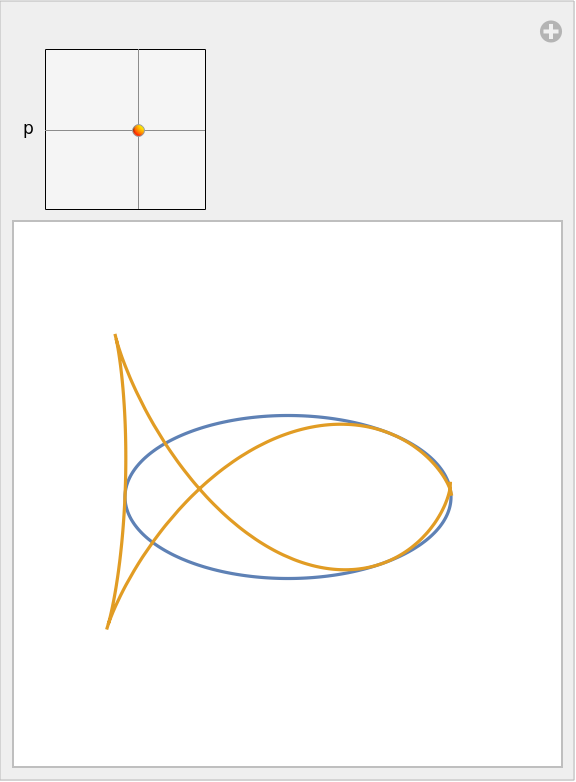 Interactively plot the ellipse along with its negative pedal curve, varying the base point: