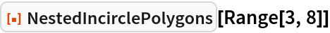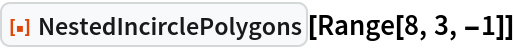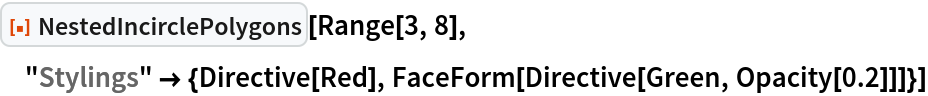 ResourceFunction["NestedIncirclePolygons"][{n1,n2,…}] displays a nested sequence of circles alternating with regular ni-gons. |