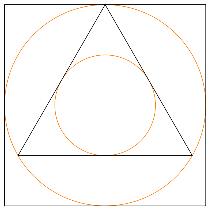 Create a graphic of nested circles and polygons inside an initial regular polygon