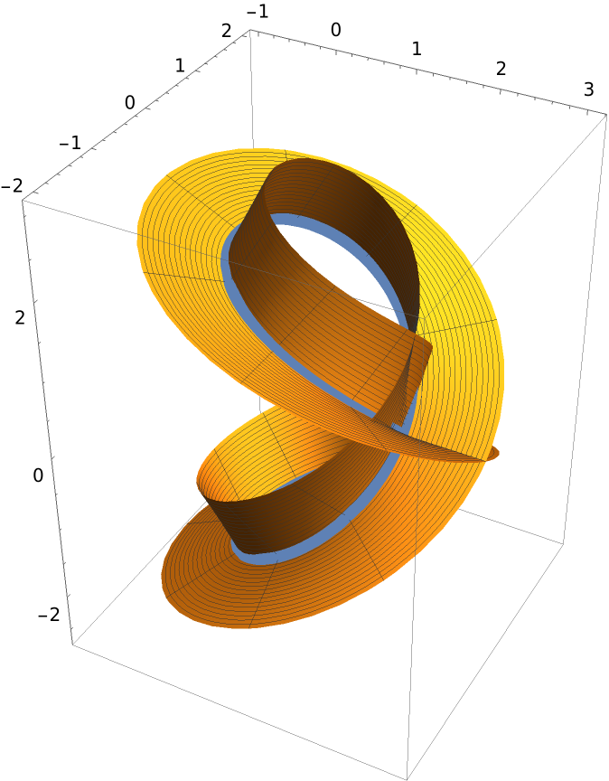 Compute the binormal surface of Viviani’s curve with the resource function BiormalSurface and plot the result: