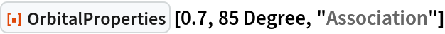 ResourceFunction["OrbitalProperties"][e,M,"format"] returns the results for orbital motion in the specific format. |