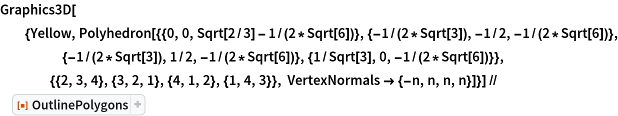 ResourceFunction["OutlinePolygons"][gr] outlines the polygons in the 3D graphics gr by beam-like representations. | |