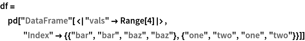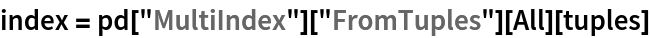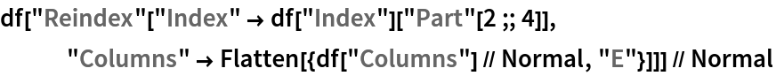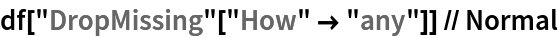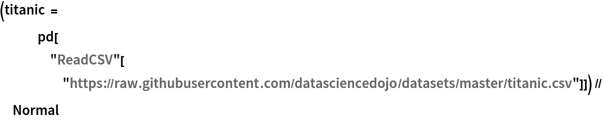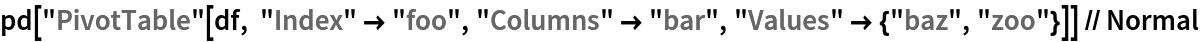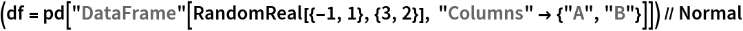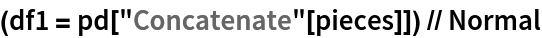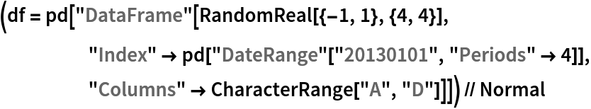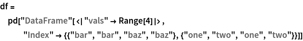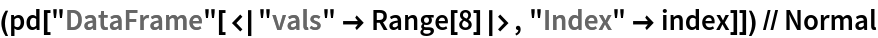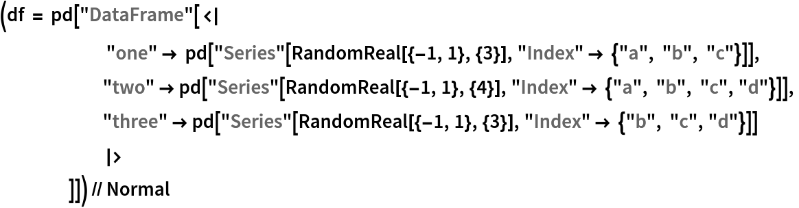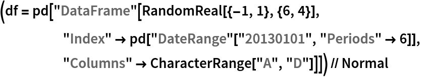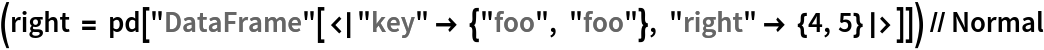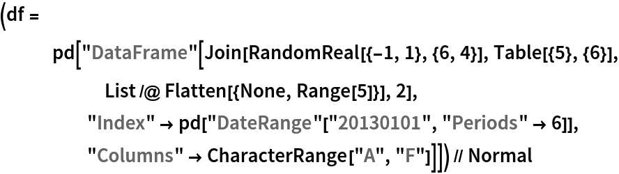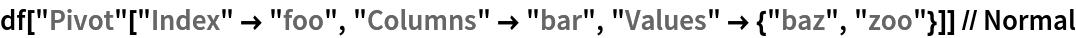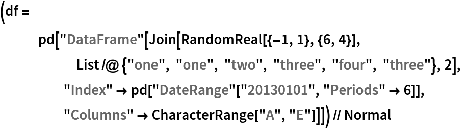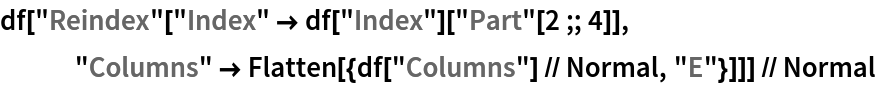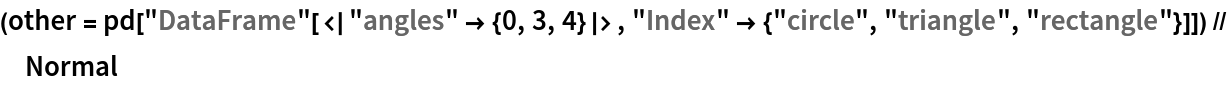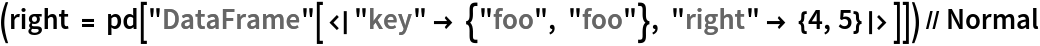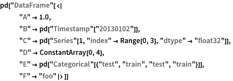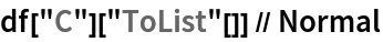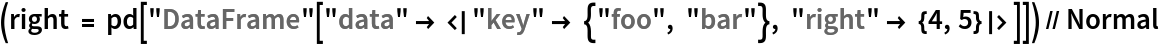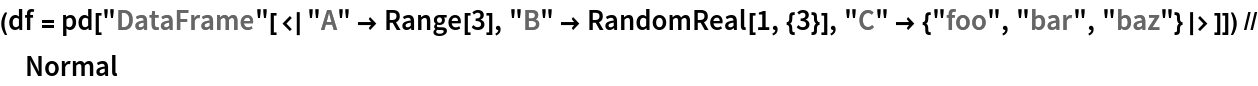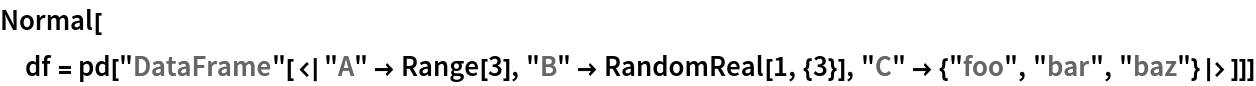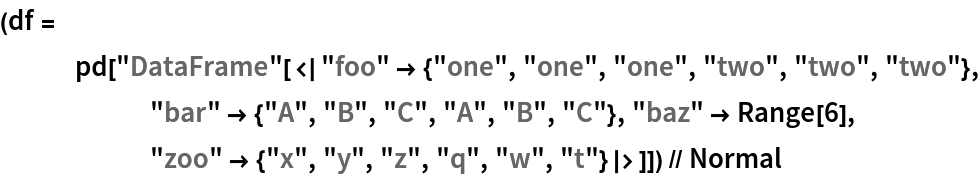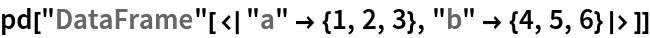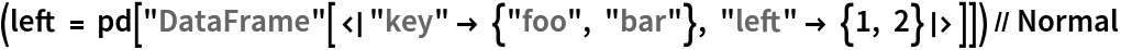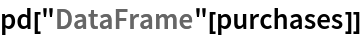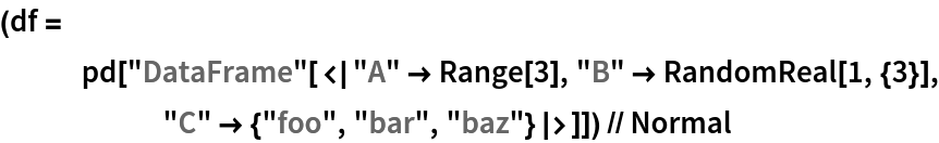 The imported "DataFrame" object is represented as an Association with keys in the form of a list: