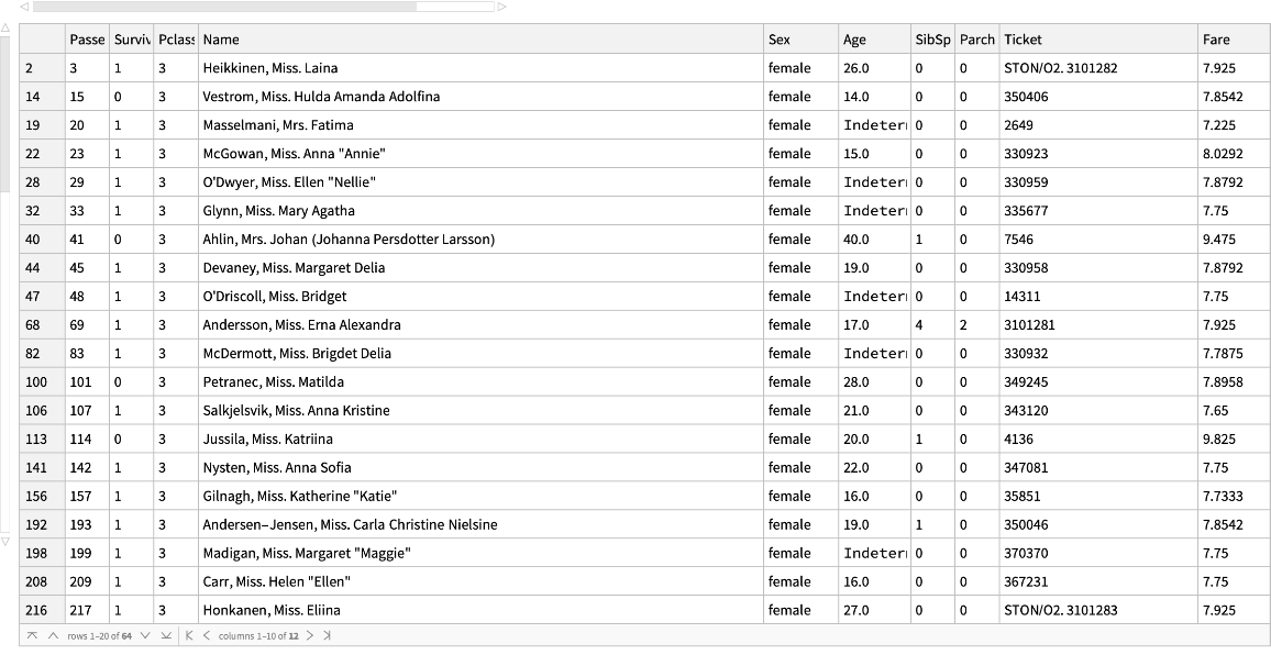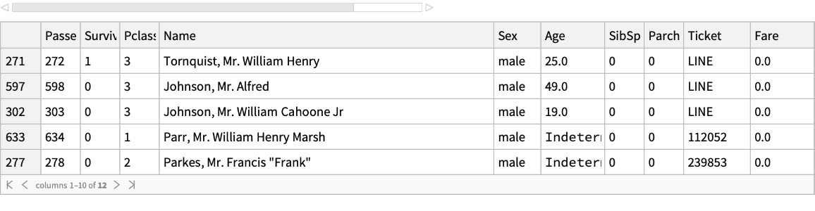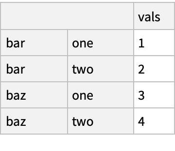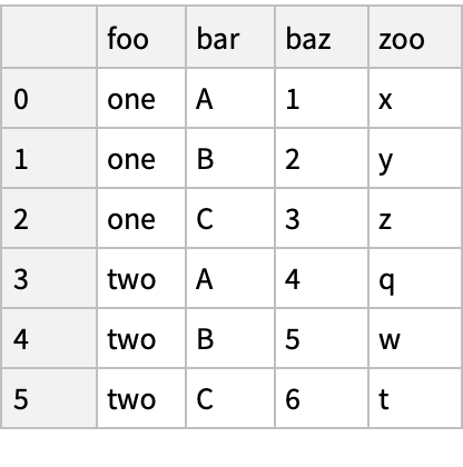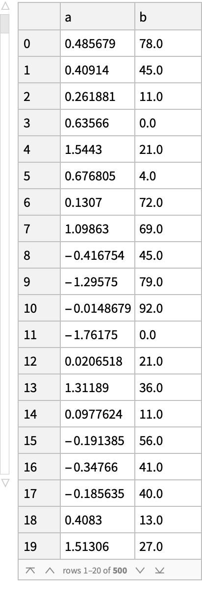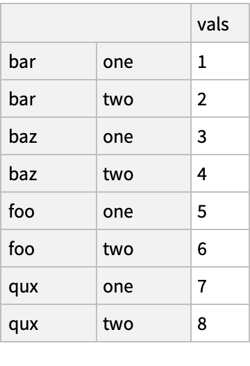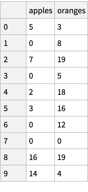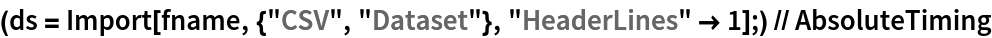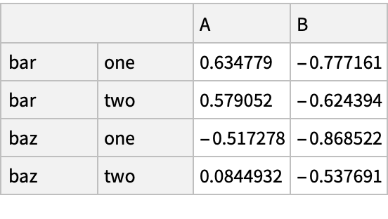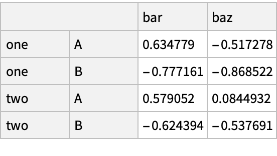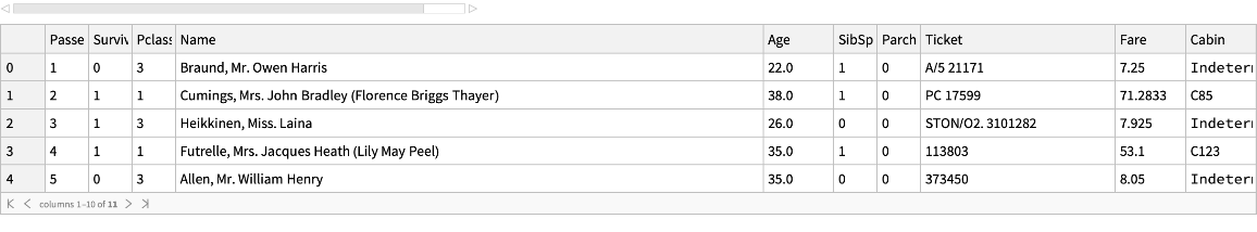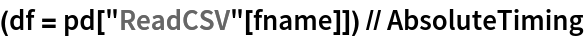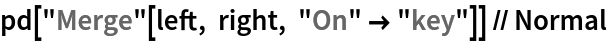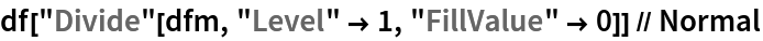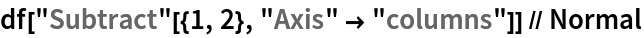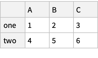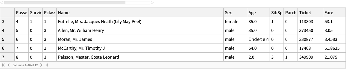 The imported "DataFrame" object is represented as an Association with keys in the form of a list: