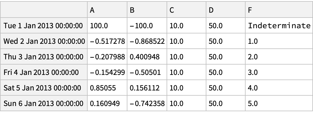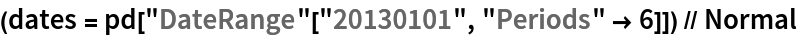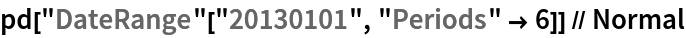 Create a date-time index array of six values by specifying the starting date in the form "yyyy-mm-dd":