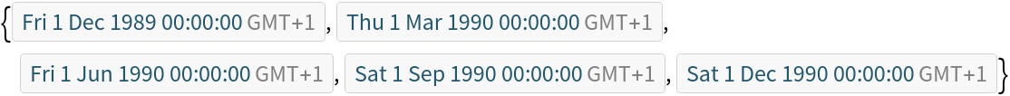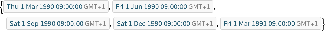 Convert the series to 9 AM of the end of the month following the quarter end and check starting dates again: