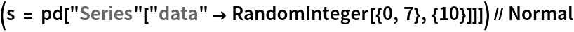 Create a Series object from a list of values, letting pandas use a default integer index:
