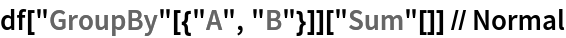 Group by values of the column "A", sum values in the groups and combine the results in a new "DataFrame" object: