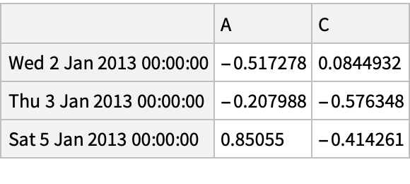 Get a part corresponding to all rows of the specified columns (or, in the pandas parlance, select on a multi-axis by label):