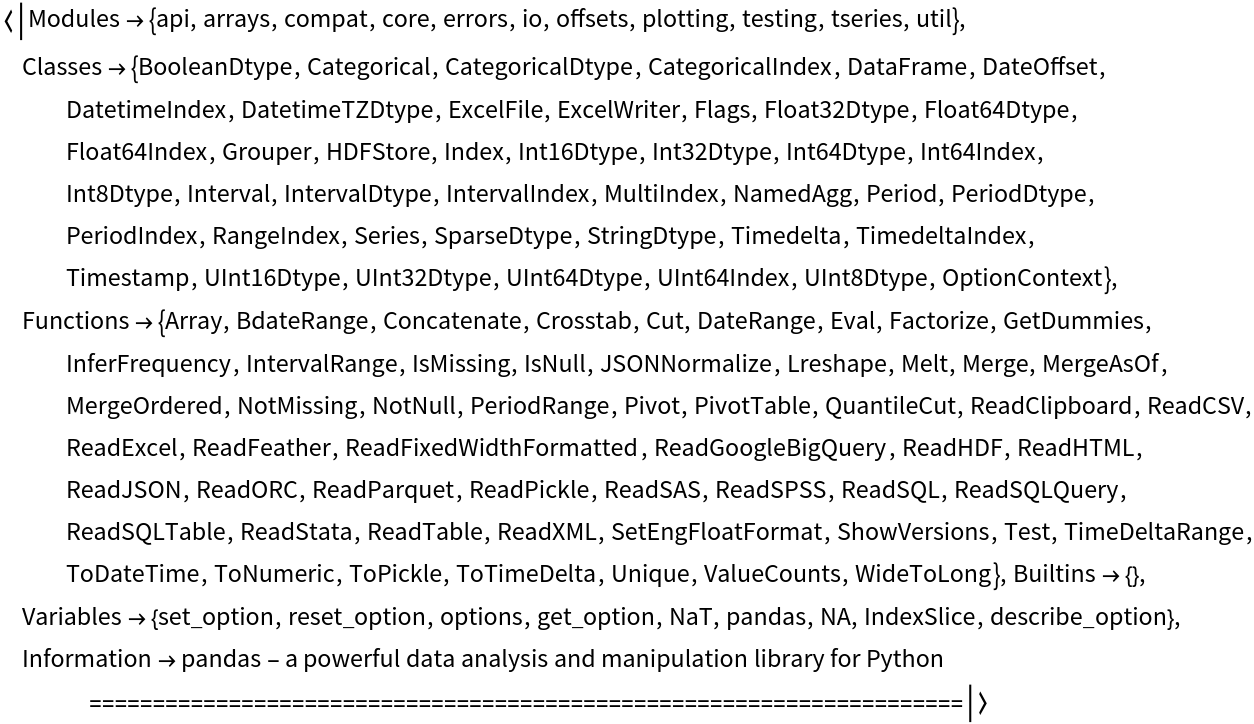 PandasObject[…] gives the same result as the resource function PythonObject with a special configuration:
