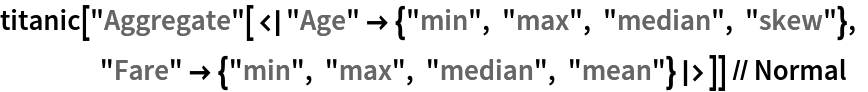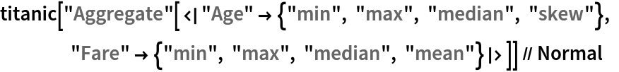 Use the specific aggregating statistics for given columns instead of the predefined statistics: