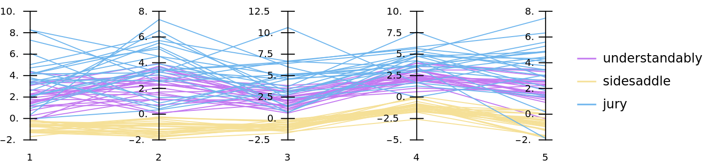 For some data, it is easier to see patterns through vertical parallel coordinates plots: