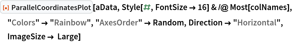 ResourceFunction["ParallelCoordinatesPlot"][mat,cols] labels the plot axes that correspond to data columns with cols. | |