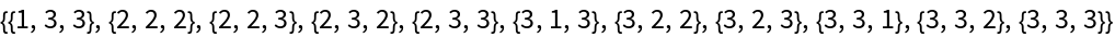 Enumerate all parking functions with length three: