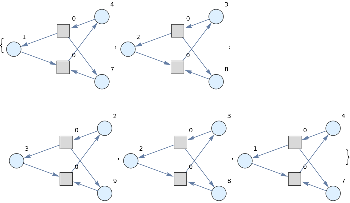 | "WeightedGraph" | directed graph form of the Petri net with token counts represented as vertex weights |
