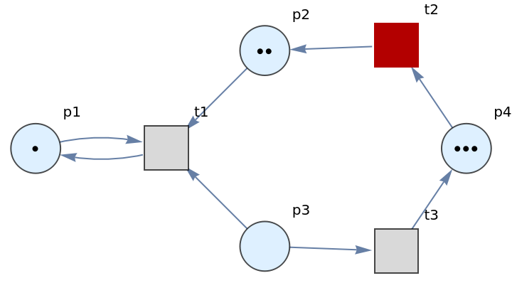 | "LabeledGraph" | directed graph form of the Petri net with token counts represented graphically |