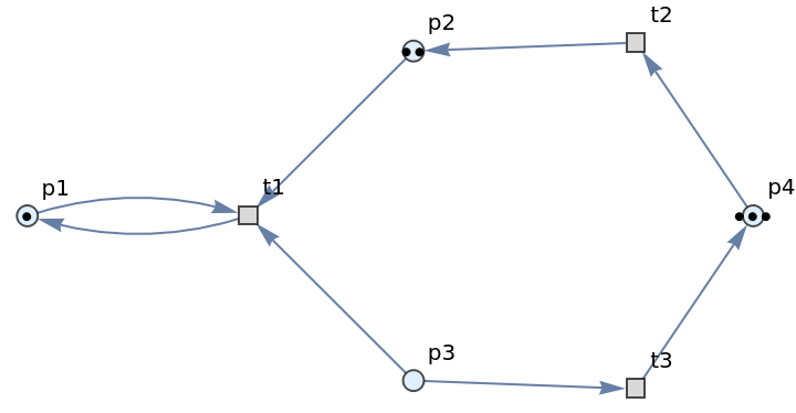 | "UnlabeledGraph" | directed graph form of the Petri net without token counts represented graphically |