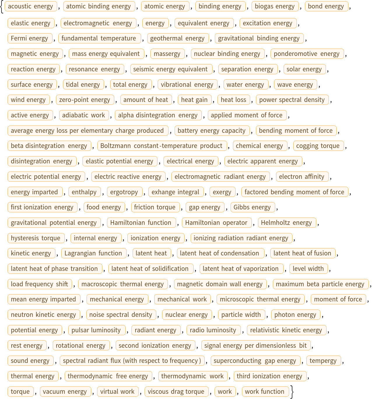ResourceFunction["PhysicalQuantityLookup"][arg] returns the list of physical quantities which share the unit dimensionality of arg. | |